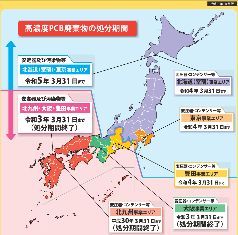 北海道(室蘭)・東京事業エリア高濃度PCB処分期限