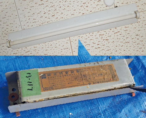 - 蛍光灯・水銀灯器具の取付部よりの撤去作業及び安定器の取外し作業